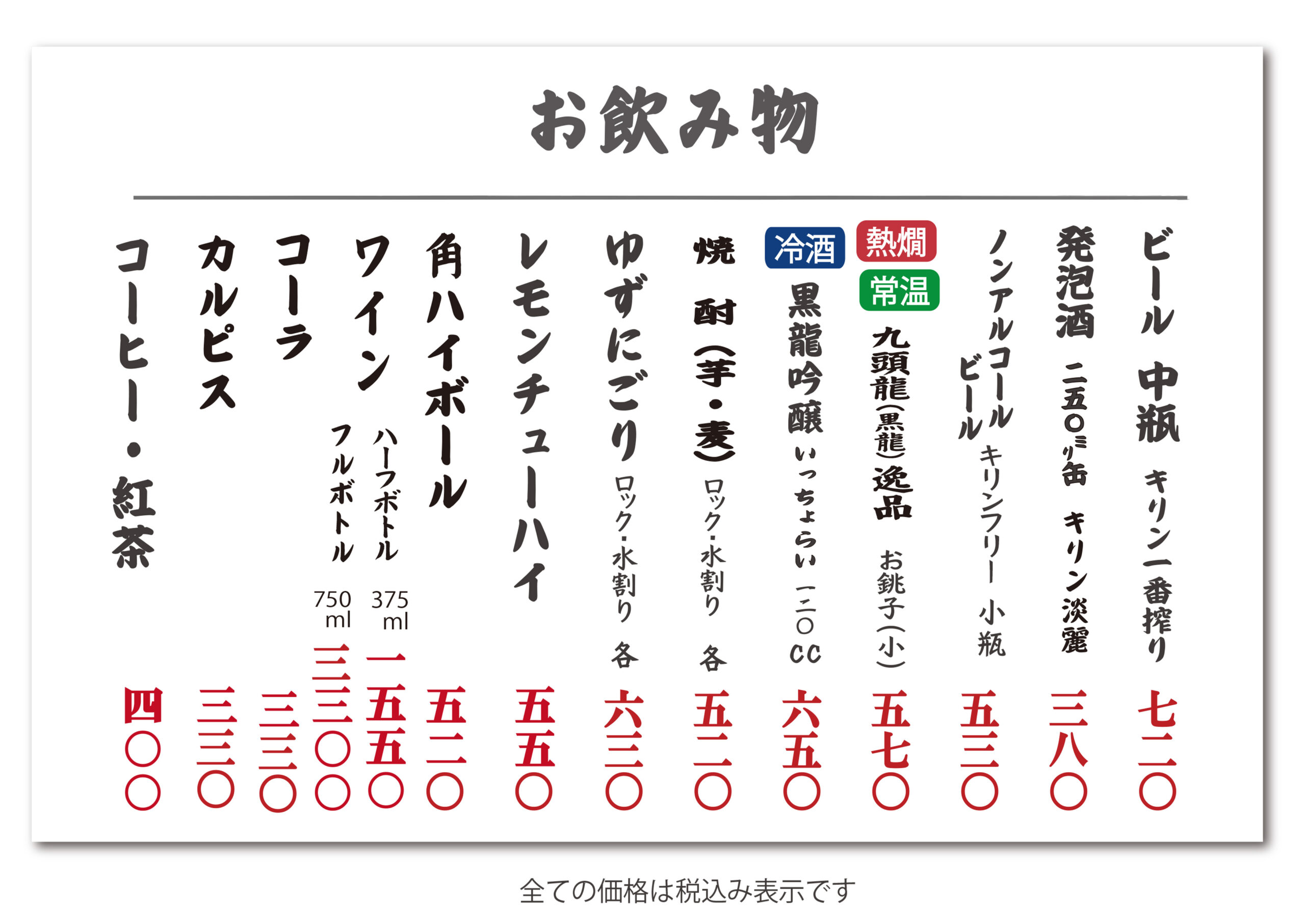 繁忙時メニュー